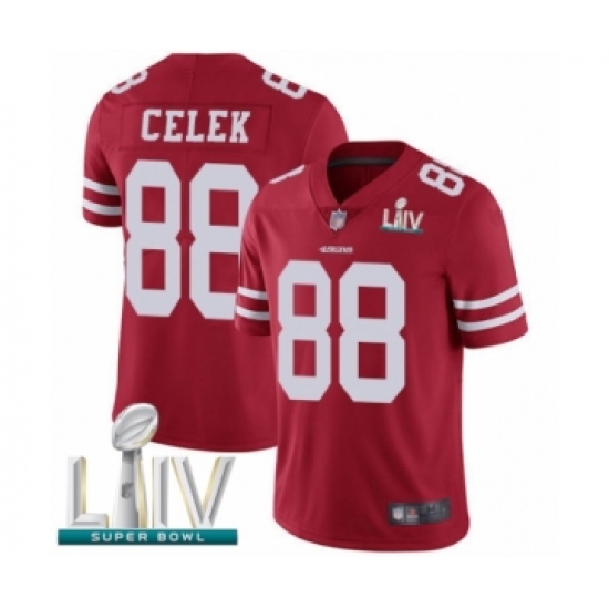 Men's San Francisco 49ers #88 Garrett Celek Red Team Color Vapor Untouchable Limited Player Super Bowl LIV Bound Football Jersey