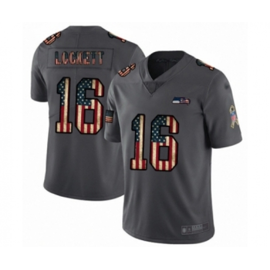 >Men's Seattle Seahawks #16 Tyler Lockett Carbon Black Retro Flag Limited Football Jersey