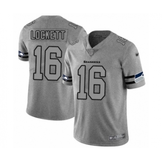 >Men's Seattle Seahawks #16 Tyler Lockett Limited Gray Team Logo Gridiron Football Jersey