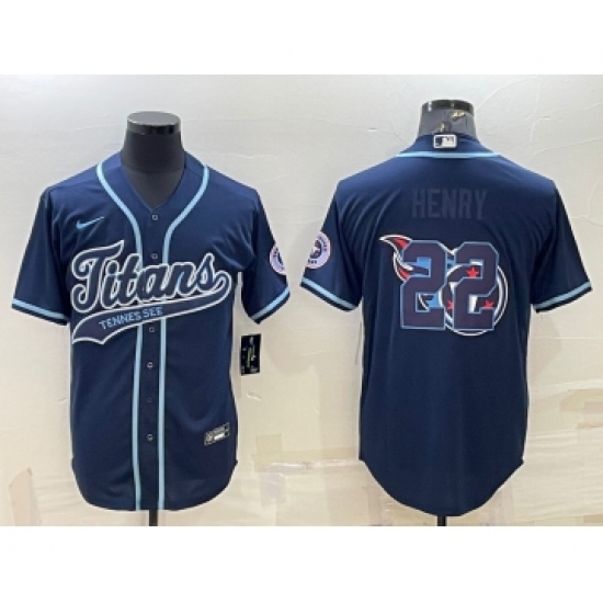 Men's Tennessee Titans #22 Derrick Henry Navy Team Big Logo With Patch Cool Base Stitched Baseball Jersey