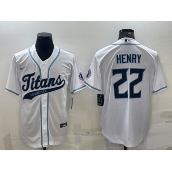 >Men's Tennessee Titans #22 Derrick Henry White With Patch Cool Base Stitched Baseball Jersey