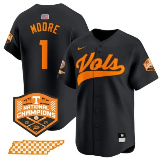 Men's Tennessee Volunteers #1 Christian Moore Black 2024 Champions Vapor Limited Stitched Jersey