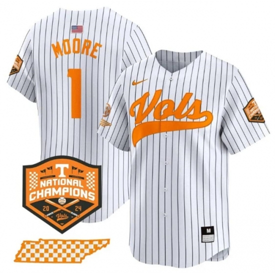 Men's Tennessee Volunteers #1 Christian Moore White Pinstripe 2024 Champions Vapor Limited Stitched Jersey