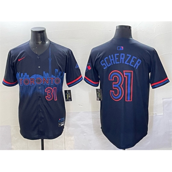 Men's Toronto Blue Jays #31 Max Scherzer Navy 2024 City Connect Limited Stitched Baseball Jersey