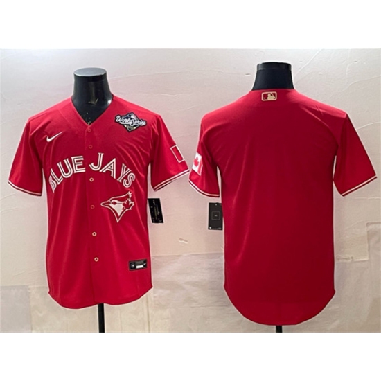 Men's Toronto Blue Jays Blank Red 2025 World Series Home Cool Base Stitched Baseball Jersey