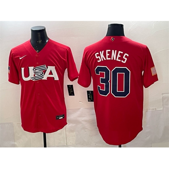 >Men's USA Baseball #30 Paul Skenes Red World Baseball Classic Stitched Jersey