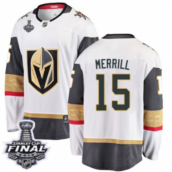 Men's Vegas Golden Knights #15 Jon Merrill Authentic White Away Fanatics Branded Breakaway 2018 Stanley Cup Final NHL Jersey