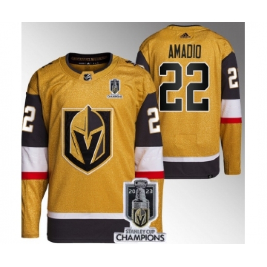 Men's Vegas Golden Knights #22 Michael Amadio Gold 2023 Stanley Cup Champions Stitched Jersey