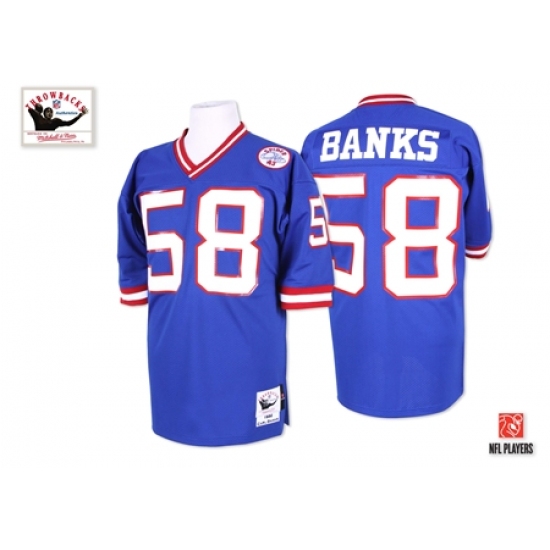Feel like part of your favorite team by wearing this NFL®Mitchell and Ness New York Giants #58 Carl Banks Authentic Jersey Blue Authentic Throwback NFL Jersey, made of thick, high-quality Pro-Brite fabric for a genuine gridiron look. The players number which 100% stitched is displayed in tackle twill on the chest, back and sleeves, along with the team name on the front. The players name which 100% stitched is displayed on a sewn-down nameplate at the back. 100% Pro-Brite nylon and 100% Pro-Brite polyester for body, 100% lycratalic spandex dazzle for Side Panels/Collar/Cuffs, NFL® Equipment patch sewn on the bottom of the front collar or fabric insert, NFL® Equipment jock tag with numeric sizing is applied to the lower left bottom of the jersey, Officially licensed.
