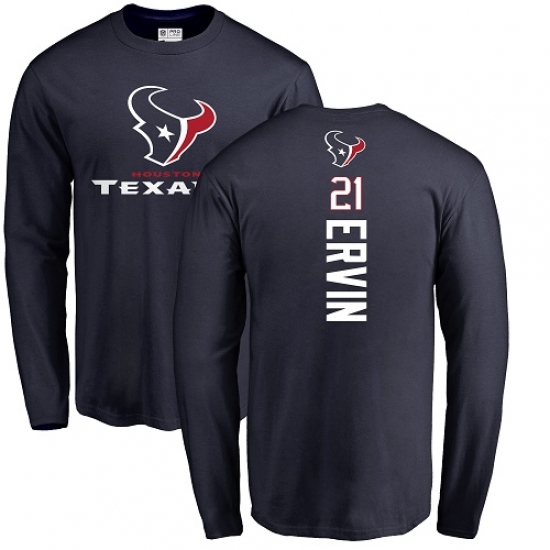 >NFL Nike Houston Texans #21 Tyler Ervin Navy Blue Backer Long Sleeve T-Shirt