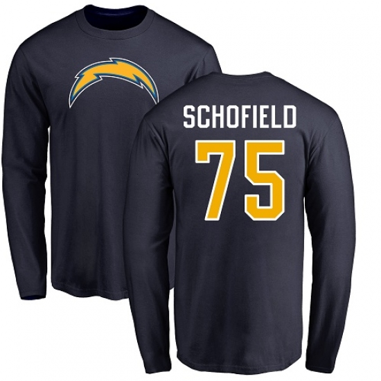 NFL Nike Los Angeles Chargers #75 Michael Schofield Navy Blue Name & Number Logo Long Sleeve T-Shirt