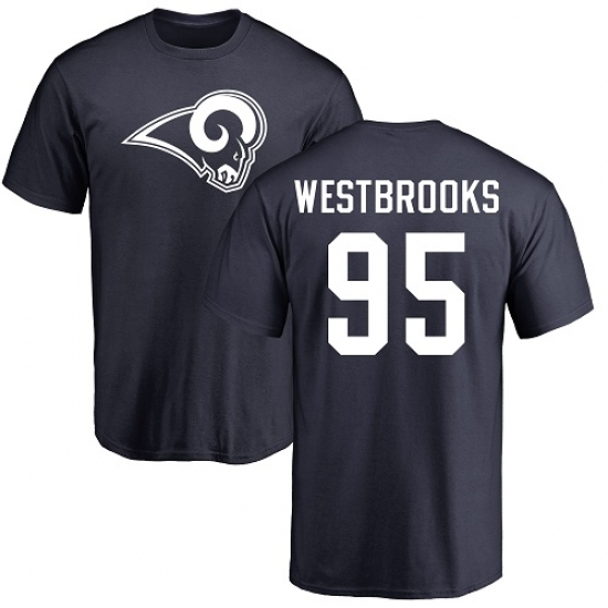 >NFL Nike Los Angeles Rams #95 Ethan Westbrooks Navy Blue Name & Number Logo T-Shirt