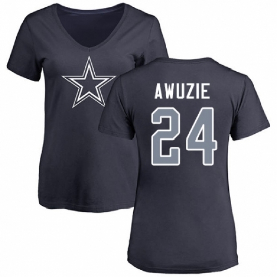 >NFL Women's Nike Dallas Cowboys #24 Chidobe Awuzie Navy Blue Name & Number Logo Slim Fit T-Shirt
