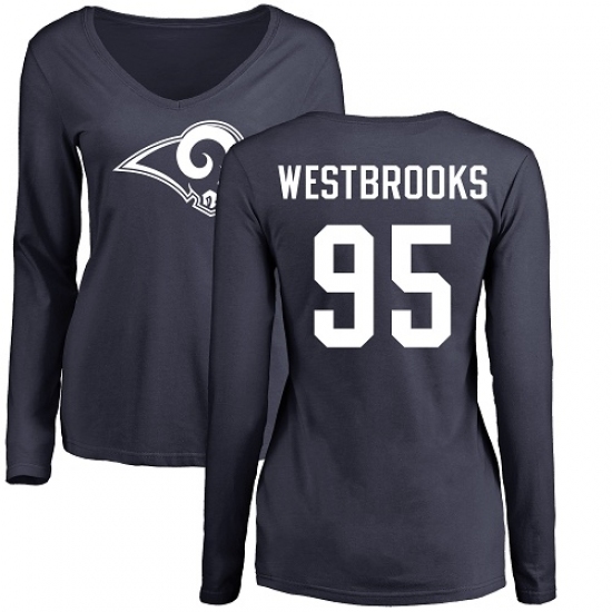 >NFL Women's Nike Los Angeles Rams #95 Ethan Westbrooks Navy Blue Name & Number Logo Slim Fit Long Sleeve T-Shirt
