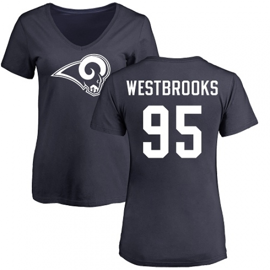 >NFL Women's Nike Los Angeles Rams #95 Ethan Westbrooks Navy Blue Name & Number Logo Slim Fit T-Shirt