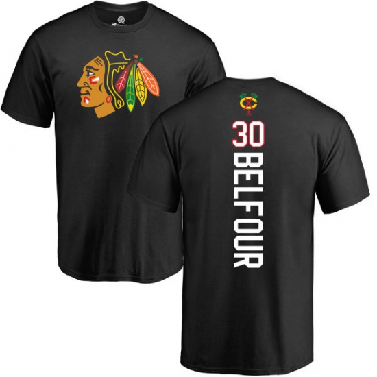 NHL Adidas Chicago Blackhawks #30 ED Belfour Black Backer T-Shirt