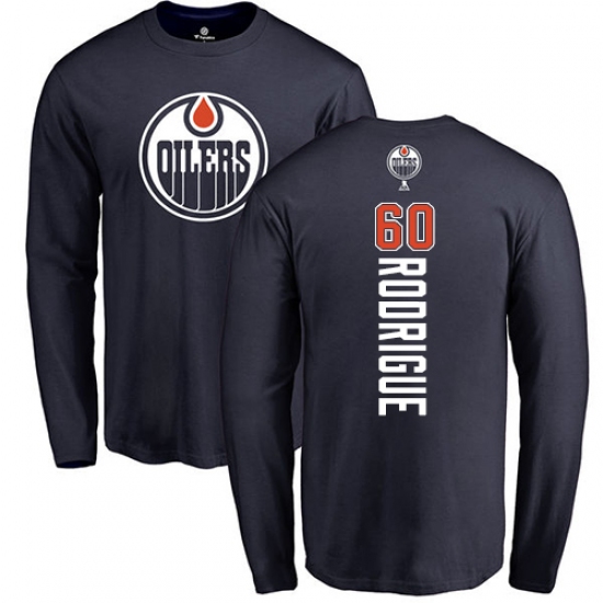 >NHL Adidas Edmonton Oilers #60 Olivier Rodrigue Navy Blue Backer Long Sleeve T-Shirt