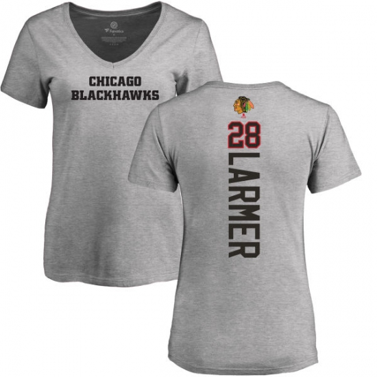 >NHL Women's Adidas Chicago Blackhawks #28 Steve Larmer Ash Backer T-Shirt