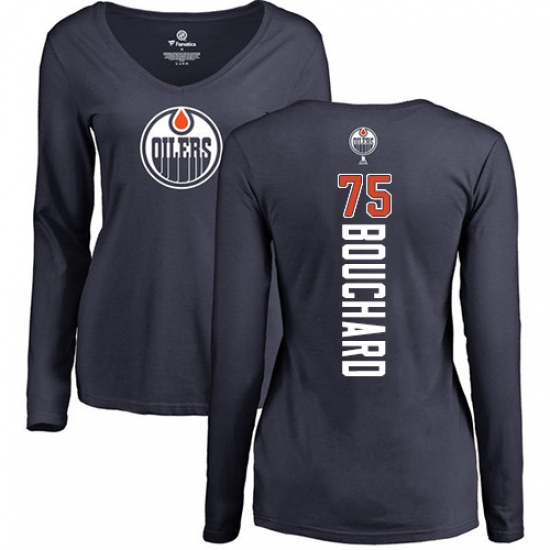 NHL Women's Adidas Edmonton Oilers #75 Evan Bouchard Navy Blue Backer Slim Fit Long Sleeve T-Shirt