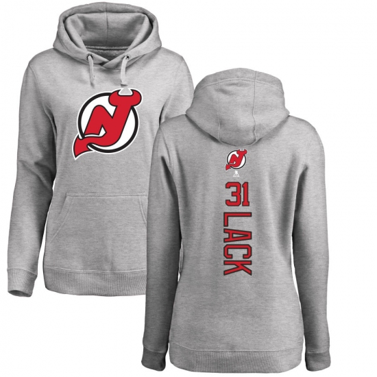 >NHL Women's Adidas New Jersey Devils #31 Eddie Lack Ash Backer Pullover Hoodie