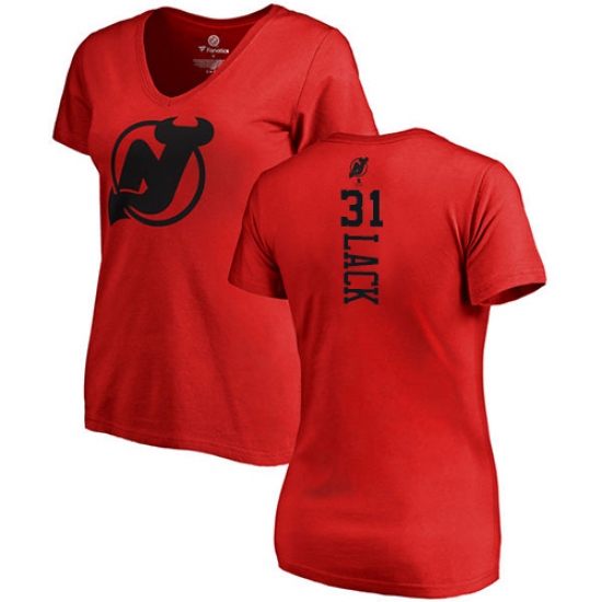 NHL Women's Adidas New Jersey Devils #31 Eddie Lack Red One Color Backer T-Shirt