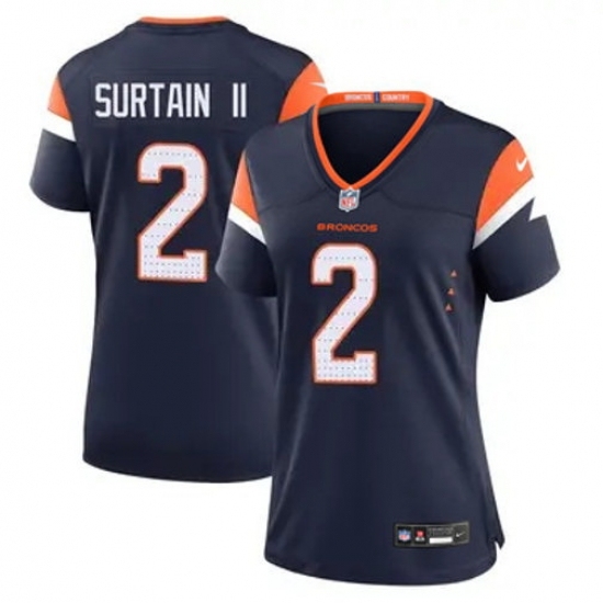 >Women Nike Denver Broncos #2 Patrick Surtain II Navy Blue Vapor Limited Jersey