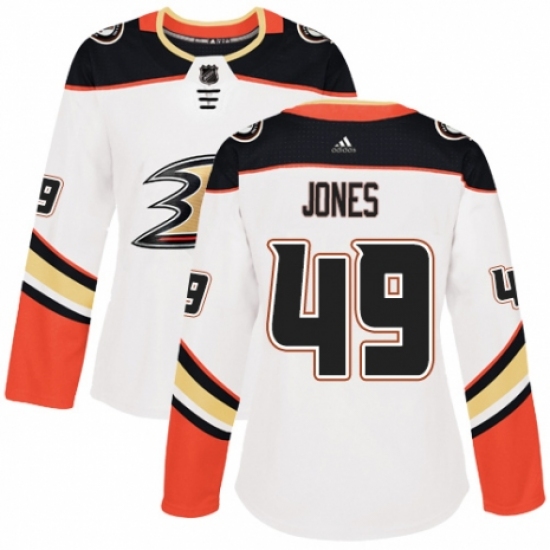 Women's Adidas Anaheim Ducks #49 Max Jones Authentic White Away NHL Jersey