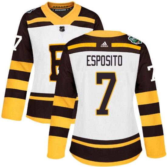 Women's Adidas Boston Bruins #7 Phil Esposito Authentic White 2019 Winter Classic NHL Jersey