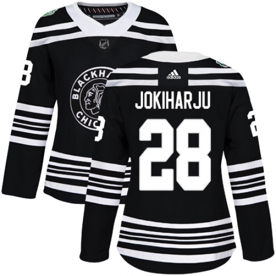 Women's Adidas Chicago Blackhawks #28 Henri Jokiharju Authentic Black 2019 Winter Classic NHL Jersey