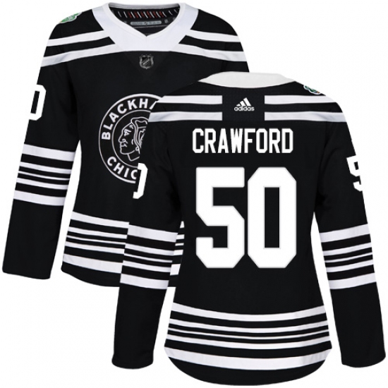 Women's Adidas Chicago Blackhawks #50 Corey Crawford Authentic Black 2019 Winter Classic NHL Jersey