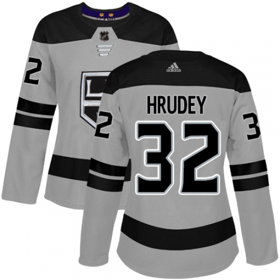 >Women's Adidas Los Angeles Kings #32 Kelly Hrudey Authentic Gray Alternate NHL Jersey