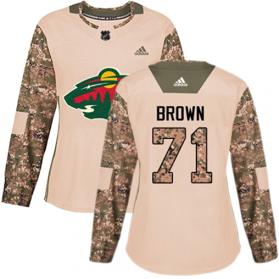 Women's Adidas Minnesota Wild #71 J T Brown Authentic Camo Veterans Day Practice NHL Jersey