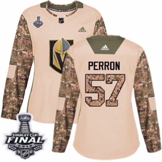 Women's Adidas Vegas Golden Knights #57 David Perron Authentic Camo Veterans Day Practice 2018 Stanley Cup Final NHL Jersey