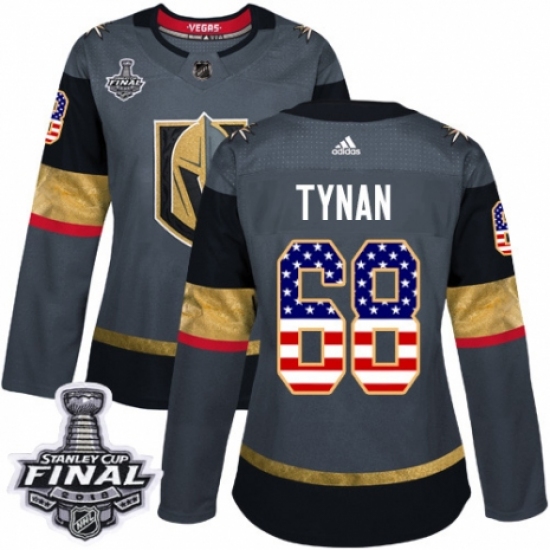 >Women's Adidas Vegas Golden Knights #68 T.J. Tynan Authentic Gray USA Flag Fashion 2018 Stanley Cup Final NHL Jersey