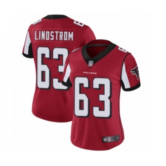 >Women's Atlanta Falcons #63 Chris Lindstrom Red Team Color Vapor Untouchable Limited Player Football Jersey