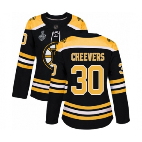 >Women's Boston Bruins #30 Gerry Cheevers Authentic Black Home 2019 Stanley Cup Final Bound Hockey Jersey