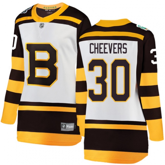 >Women's Boston Bruins #30 Gerry Cheevers White 2019 Winter Classic Fanatics Branded Breakaway NHL Jersey