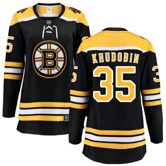 Women's Boston Bruins #35 Anton Khudobin Authentic Black Home Fanatics Branded Breakaway NHL Jersey