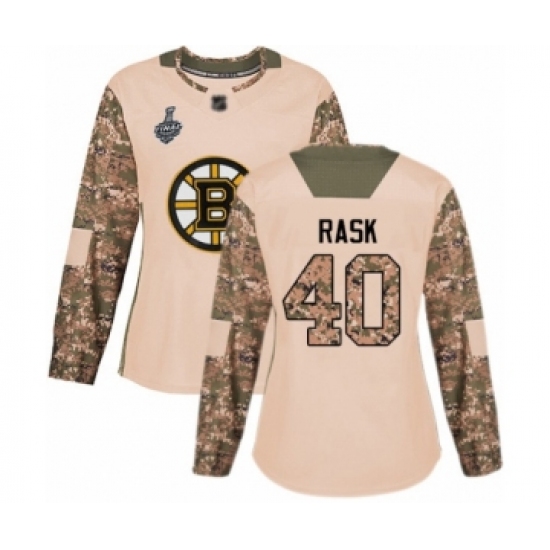 >Women's Boston Bruins #40 Tuukka Rask Authentic Camo Veterans Day Practice 2019 Stanley Cup Final Bound Hockey Jersey