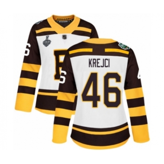 >Women's Boston Bruins #46 David Krejci Authentic White Winter Classic 2019 Stanley Cup Final Bound Hockey Jersey