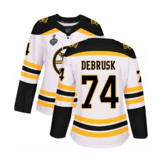 Women's Boston Bruins #74 Jake DeBrusk Authentic White Away 2019 Stanley Cup Final Bound Hockey Jersey