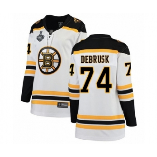 Women's Boston Bruins #74 Jake DeBrusk Authentic White Away 2019 Stanley Cup Final Bound Hockey Jersey