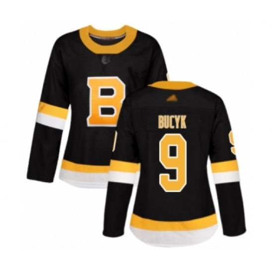Women's Adidas Boston Bruins #9 Johnny Bucyk Authentic Black Home NHL Jersey