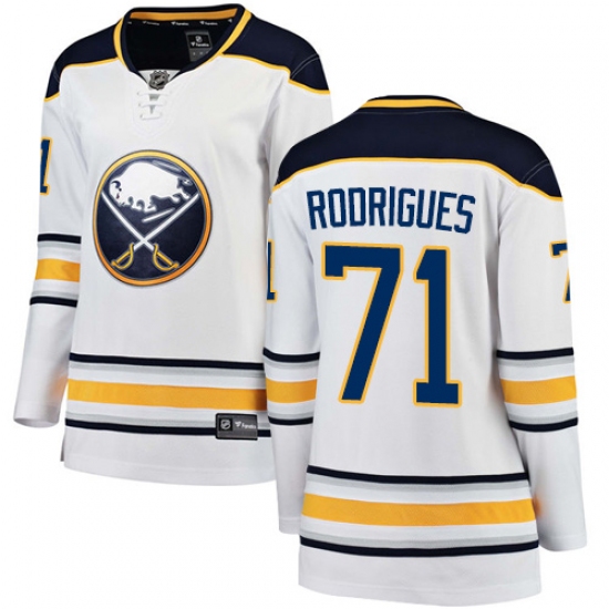 Home>NHL>Buffalo Sabres>Evan Rodrigues>Women's Buffalo Sabres #71 Evan Rodrigues Fanatics Branded White Away Breakaway NHL Jersey