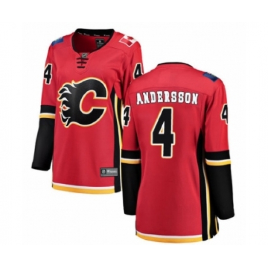 >Women's Calgary Flames #4 Rasmus Andersson Authentic Red Home Fanatics Branded Breakaway NHL Jersey
