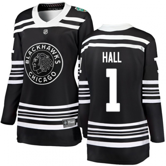 >Women's Chicago Blackhawks #1 Glenn Hall Black 2019 Winter Classic Fanatics Branded Breakaway NHL Jersey