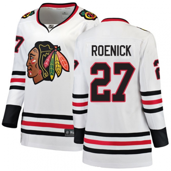 Home>NHL>Chicago Blackhawks>Jeremy Roenick>Women's Chicago Blackhawks #27 Jeremy Roenick Authentic White Away Fanatics Branded Breakaway NHL Jersey