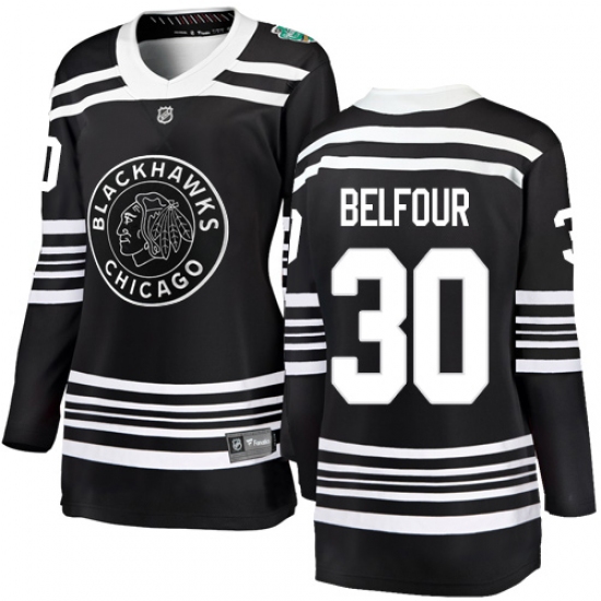 >Women's Chicago Blackhawks #30 ED Belfour Black 2019 Winter Classic Fanatics Branded Breakaway NHL Jersey