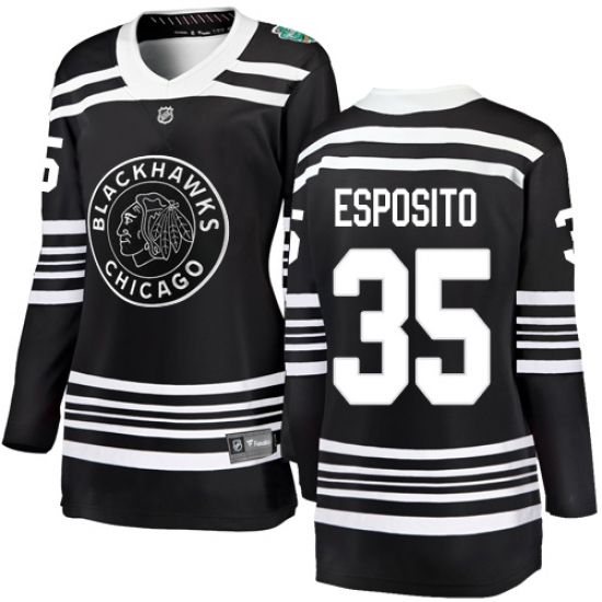 >Women's Chicago Blackhawks #35 Tony Esposito Black 2019 Winter Classic Fanatics Branded Breakaway NHL Jersey