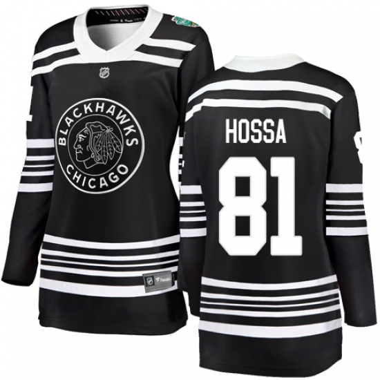 >Women's Chicago Blackhawks #81 Marian Hossa Black 2019 Winter Classic Fanatics Branded Breakaway NHL Jersey
